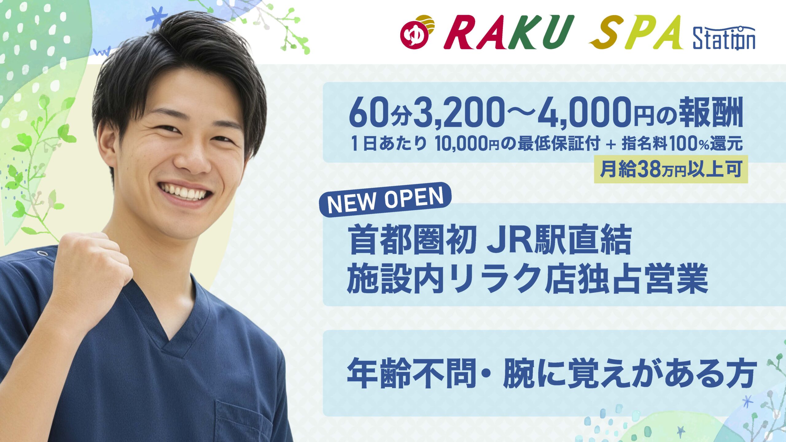 首都圏初の駅高架下温浴施設として、JRが開発、極楽湯が運営する**「RAKU SPA 武蔵小金井」が、2025年12月5日にいよいよオープンします。 それに伴い、当施設内にオープンするリラクゼーションサロン「岩盤リラク」では、この関東初のビッグプロジェクトを成功に導く、重要なコアメンバー**を募集します。